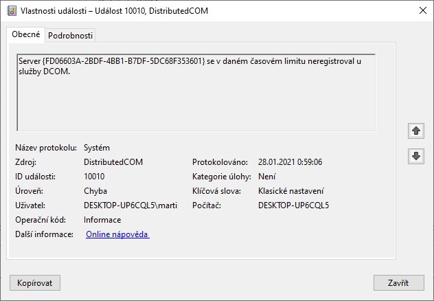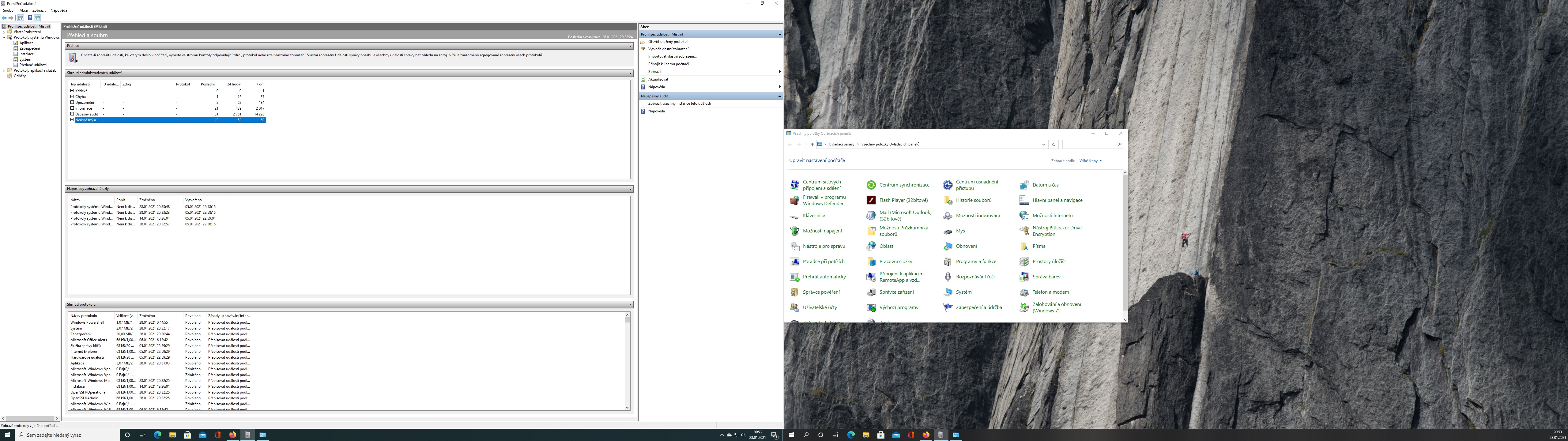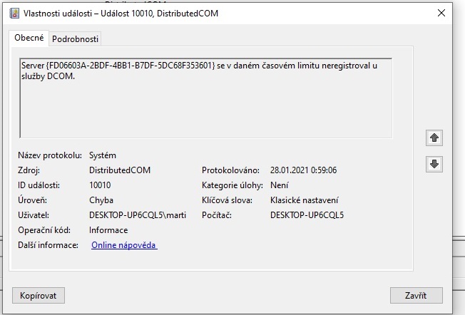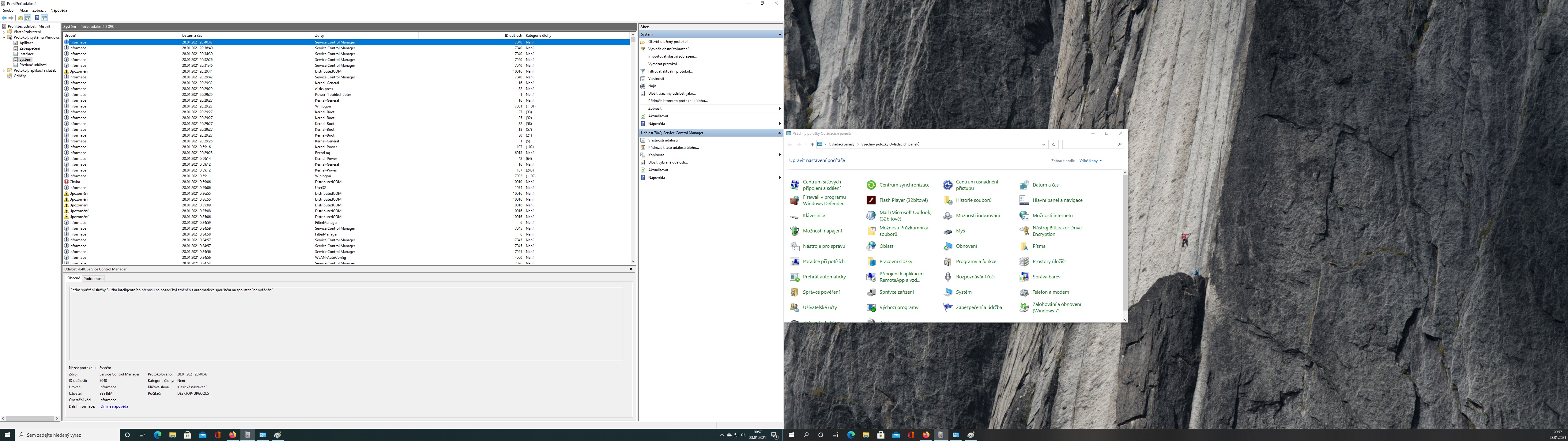 Tady jsou nějaké print screeny z prohlížeče událostí. Je tam spousta žlutých trojúhelníků a taky červených vykřičníků. Ty červené se týkají vždy "Service Control Manager" nebo "DistributedCom". Taky přidávám detaily. Všiml jsem si u těch print screenů, že pokračuje obrazovky ještě daleko vlevo a tam jsou ty okna co já nevidím?!?!? Přitom rozlišení mám nastavené správně.