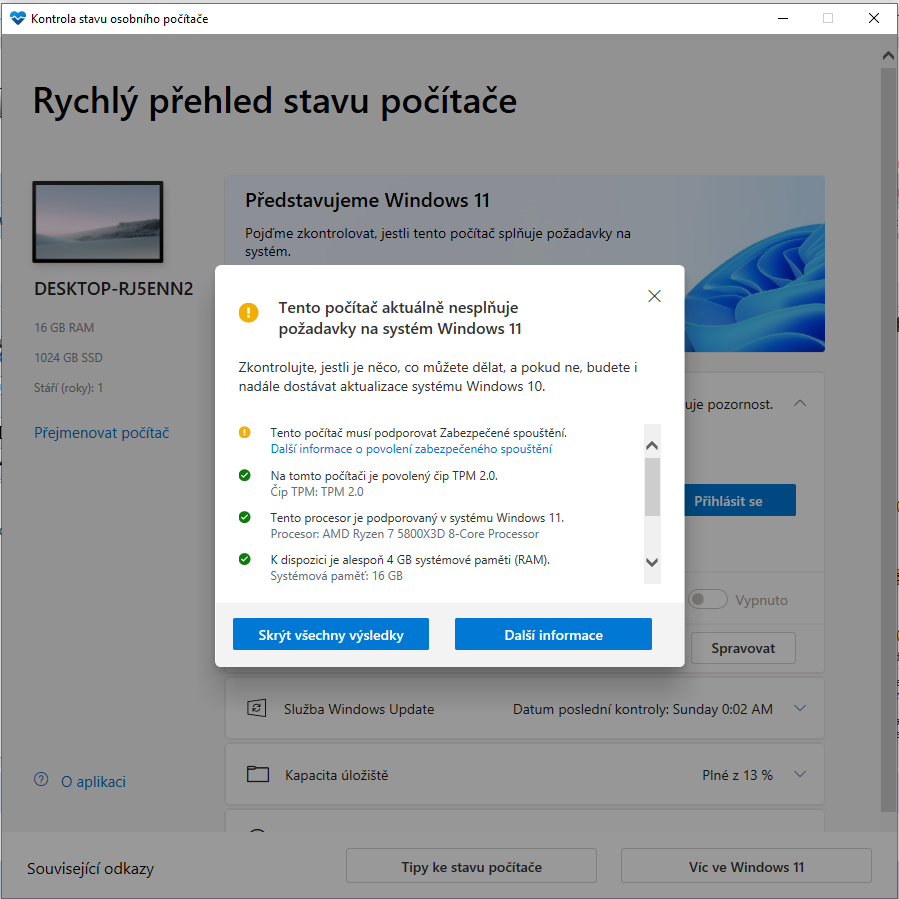 prosim vás, naistaloval jsem si dnes Windows 10 Pro, chtěl bych a chtěl jsem aktualizovat na Win 11 Pro, ale nesplnuju pozadavky, konktretne tedy pozadavek ohledne Secure bootu a Checkit, pise další věc s GPT.