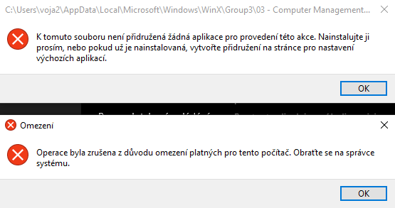 ITCrowd píše:Buď někdo smazal co neměl, nebo bezpečnostní politikou zakázal přístup. Nebo asocioval soubory konzol (.msc) s něčím jiným.