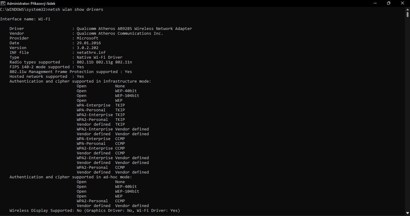 netsh wlan show drivers