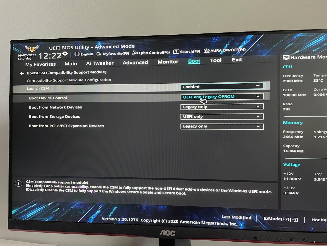 V EZ mode v BIOSu (klávesa F7) zmáčkni klávesu F8, nebo při startu PC mačkej klávesu F8. Objeví se ti zařízení, ze kterých můžeš nabootovat. Musí tam být ta instalační fleška v UEFI režimu. Tzn. naformátovaná na FAT32...CSM dej na Disabled. Zapni firmware TPM v CPU, zapni a aktivuj Secure Boot. Ze všeho nejdříve ale naflešuj nejnovější BIOS. Máš jej 3 roky starý: