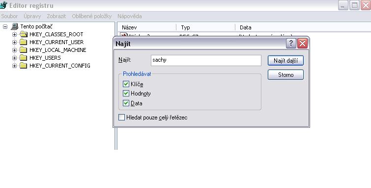 Pak klikneš na Najít další atd. dokud se neodstraní všechny sachy. /Ty screeny jsou zde přehozené-tedy regedit_1 a regedit_2/.