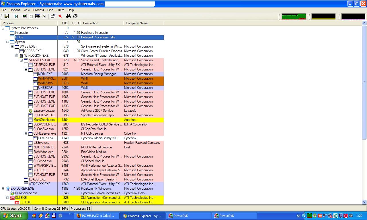 posledne dni je moj PC strasne spomaleny. Najprv som odstranil virusy a spywary, ale hoci je teraz cisty, tak sa stale spomaluje. Podla vypisu z Process Explorera vytazuju CPU hlavne Deferred Procedure Calls (DPCs).