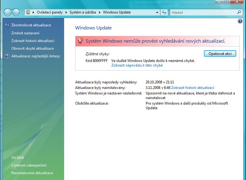 Na booku mám Vista home premium a system nemůže vyhledat nové aktualizace Nesetkal jste se s tím někdo