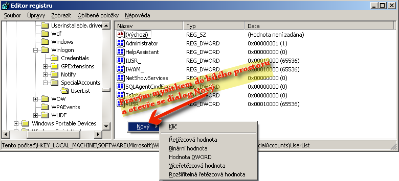 No já jsem to normálně zavřel. Nyní ještě prosím o bližší vysvětlení následujícího postupu. Do těch registrů se umím dostat, ale jak tam dostat to další -proměnnou typu DWORD- To se tam někde píše nebo jak?Díky.