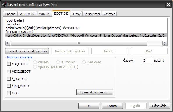 tak ve vistách záložka BOOT.INI není je tam pouze -- OBECNÉ ; SPUŠTĚNÍ POČÍTAČE ; SLUŽBY ; PO SPUŠTĚNÍ ; NÁSTROJE