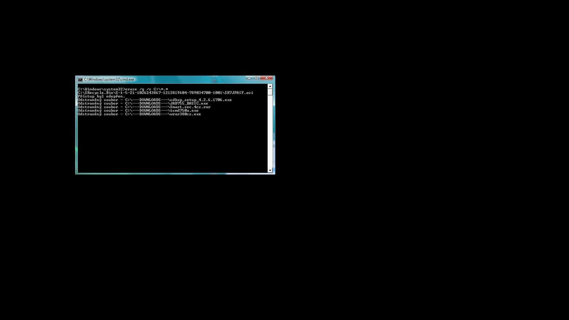 Dobrý den. Mam Vistu. Stahoval jsem jeden soubor pres torrent. Dostahovalo se to. Spustil jsem to a hodila se tabulka a pro pokracovani stisknout OK. Stisknul jsem OK a resstartoval se mi PC tak se tedy prihlasim a najednou mi to hodilo tabulku v CMD a zacalo my to vymazávat data včas jsem to odkliknul ale maze mi to pri kazdem prihlaseni. Prosim potrebuju poradit. DIKY MOC :-(