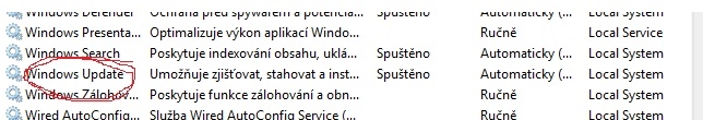 tak sem se tam díval a v seznamu neni nic co by mělo v názvu "windows update"Žbeky píše:Spusť "services-msc" a podívej se, jestli je spuštěná služba windows update. Popřípadě ji spusť ručně