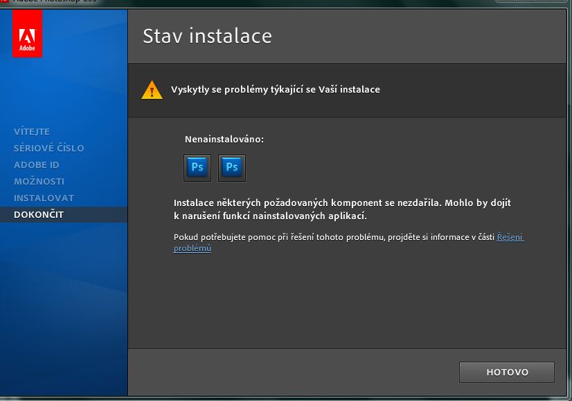 No tak jsem podle návodu vyčistila, stáhla nový photoshop cs5 a napsalo mi to: Vyskytly se problémy týkající se vaší instalace. Nenainstalováno : Adobe Photoshop (64bit) a Adobe Photoshop cs5