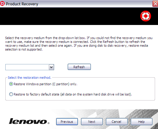 Tedy jsem si koupil od supportu Lenova recovery DVD.