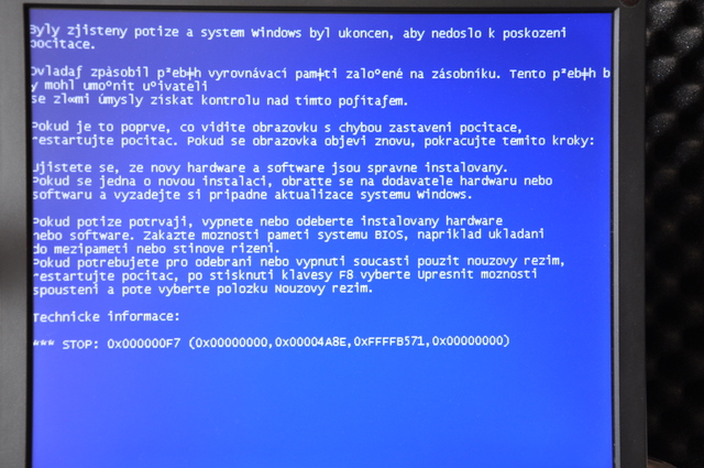 Chybu způsobil ovladač acpi.sys (součást Windows), jehož rutina způsobila tzv. přetečení zásobníku. Jelikož pochybuji o tom, že by léty prověřený ovladač obsahoval takovou chybu, viděl bych to na vadu operační paměti nebo operační systém napadený nějakou infekcí.