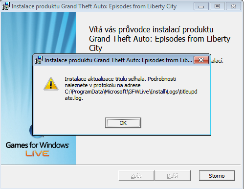 Zdravím , nevím přesně zda jsem ve správné kategorii , ale asi jo . Jde o to že hra Episodes From Liberty city (datadisky GTA IV) nejdou aktualizovat na poslední patch . Vypadá to následovně naistaluju hru EFLC zadám cd klíč a pak když chci updatovat hru na poslední patch 1.1.2.0 objeví se ikonka instalace od GFWL a pak to vyhodí tuto chybu : http://2i.cz/4a7ba78d5e . Dělá mi to poprvé v životě za celou tu dobu co tuhle hru hraju a vážně s toho šílím. Měl jsme dřív zálohu této hry , protože jsem v ní modoval a když se mi podařilo něco podělat prostě jsem nahodil zpátky zálohu . Záloha je ale smazaná , aktualizace jako directX apod naistalované , a jiné hry , jako třeba základní GTA IV fungují bez problémů a aktualizace se naistaluje okamžitě , prosím help :oops:
