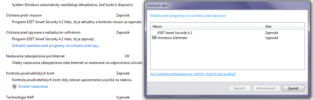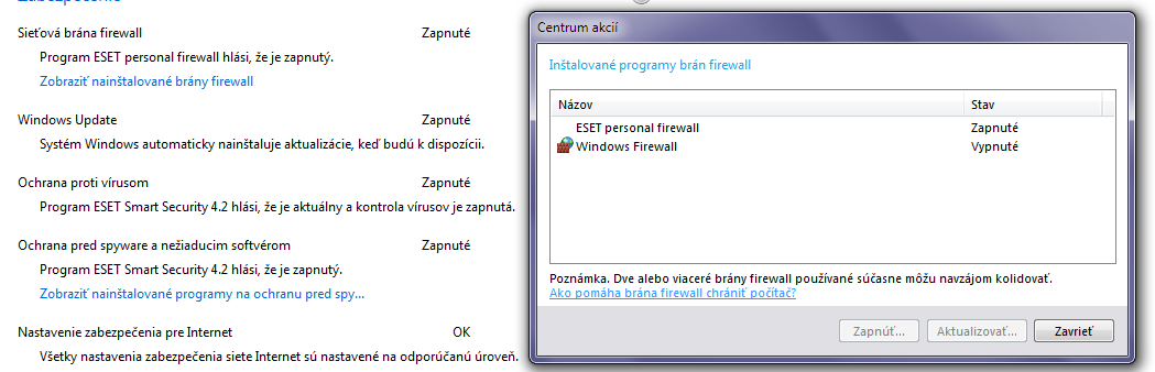 Ty to máš tedy na svém PC také oboje vypnuté, a máš zaplý firewall a anitivir jen od toho ESETU?