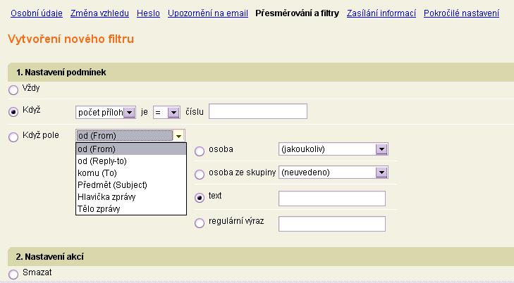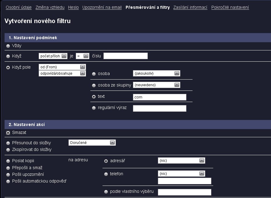 Ale je to m.j. i na filtrování nevyžádané pošty. Já Seznam nepoužívám a na laborování na seznamu nemám teď čas. Je to ale stejný jako jinde. Já mám na Centru nastavený, aby mi to na OE poslalo jen poštu, která má příponu .cz. Je to ale trochu problematický, protože když chceš něco registrovat, jako já ráno Freshdiagnose, tak musíš tan filtr vypnout, jinak ti nepřijde klíč.
