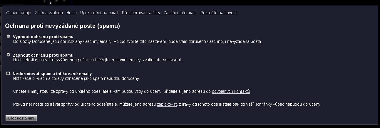 to tam je ,ale jak to nastavit?,nepřipadá mi to jako blokování nevyžádané pošty a i kdyby to šlo,přece každý mail co mi od těch šmejdů přijde,nebudu nastavovat v tomto nastavení------