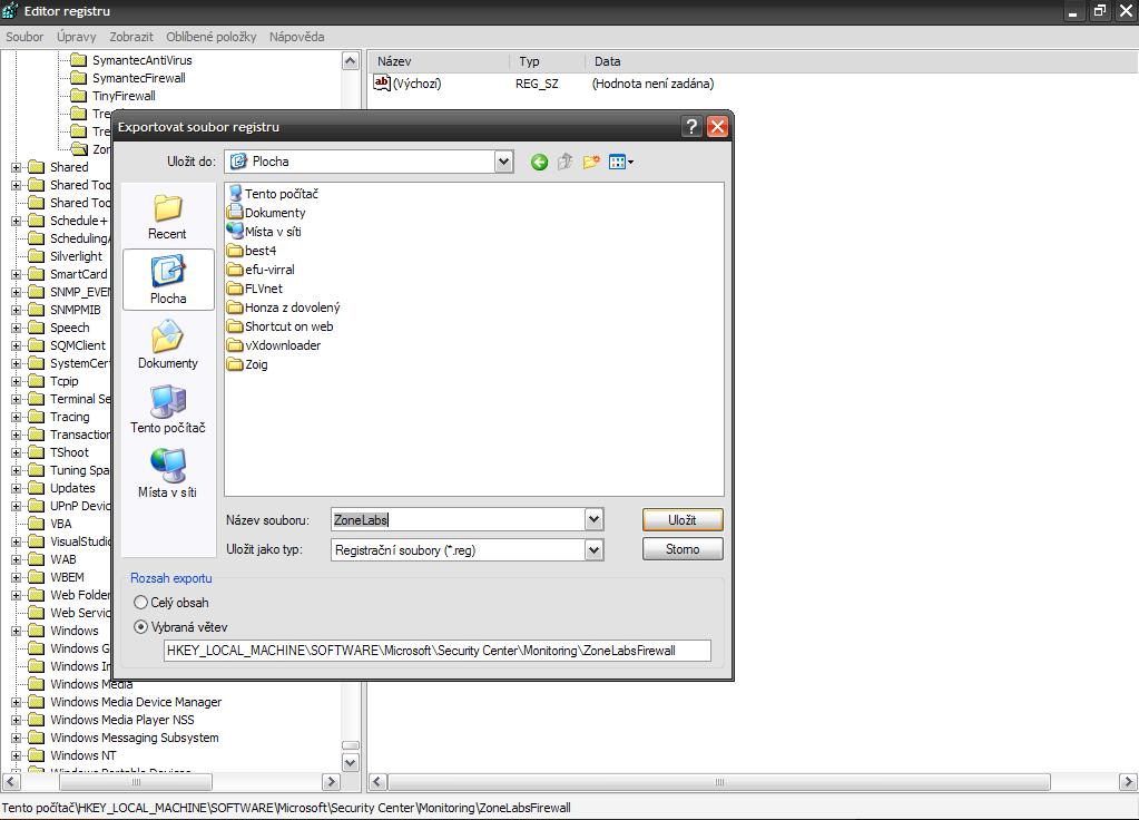{829BDA32-94B3-44F4-8446-F8FCFF809F8B} - to je klíč v registru, který hlásí zapnutí Zene Alarm