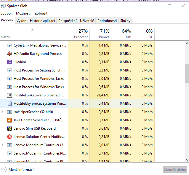 Dobrý den, dnes při zapnutí počítače jsem nahlídnul do správce úloh a nalez jsem tam toto ''Hostitelský proces systému Windows''. Nikdy před předtím tam nic takového nebylo, tak jsem si to vyhledal. Ale někdo říkal že je to bezpečné, někdo že zas ne. Projel jsem to Avastem a Malwerbytes, ale nic to nenašlo. Proto se vás, jakožto lidí a né strojů, chci zeptat, co to je. Úloha nijak nežera paměť atd... Ale nejsem ji jistý, co to je.
