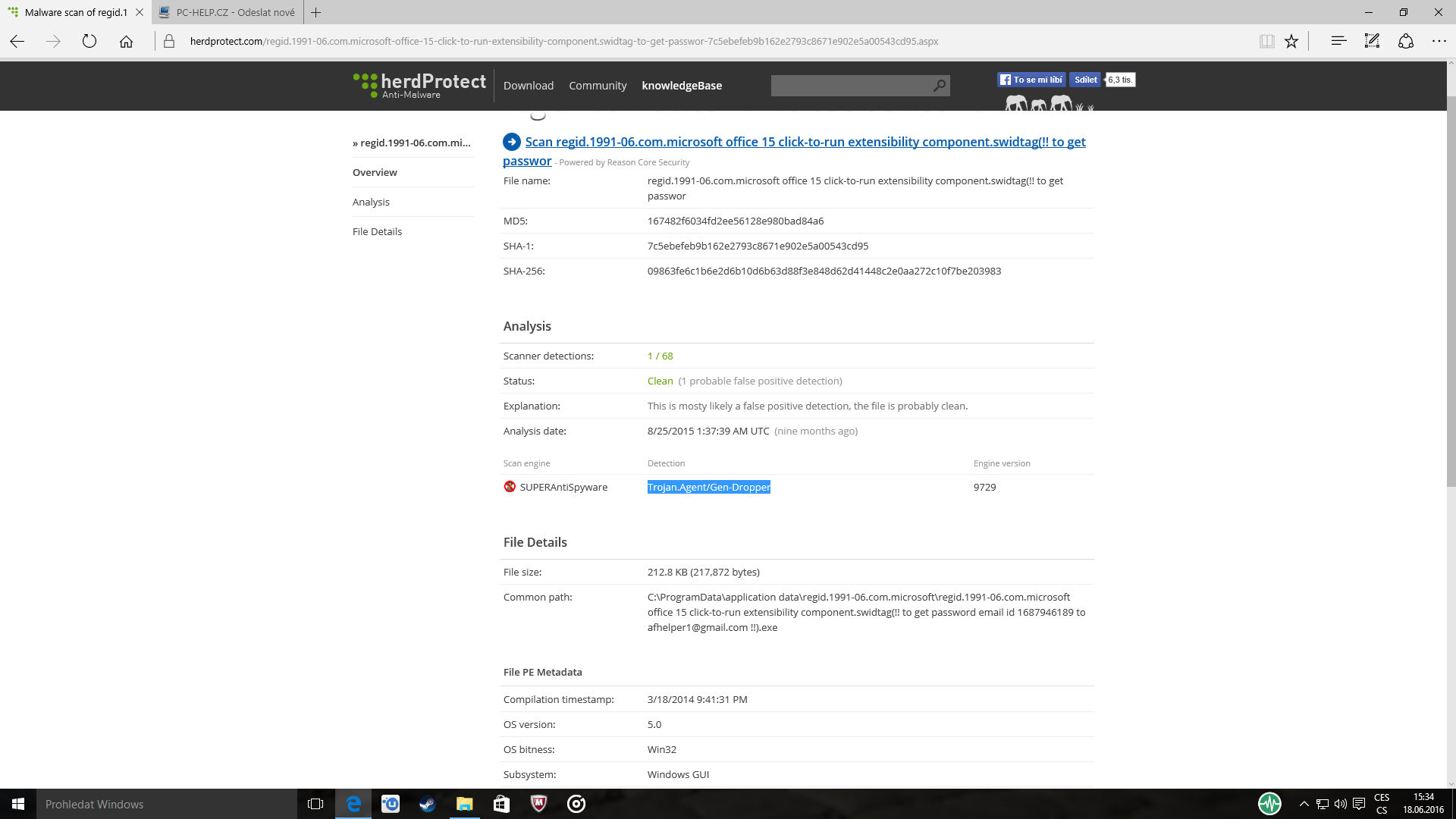 jaro3 píše:ten soubor je čistý , jen jedna detekce z 68 antivirů..