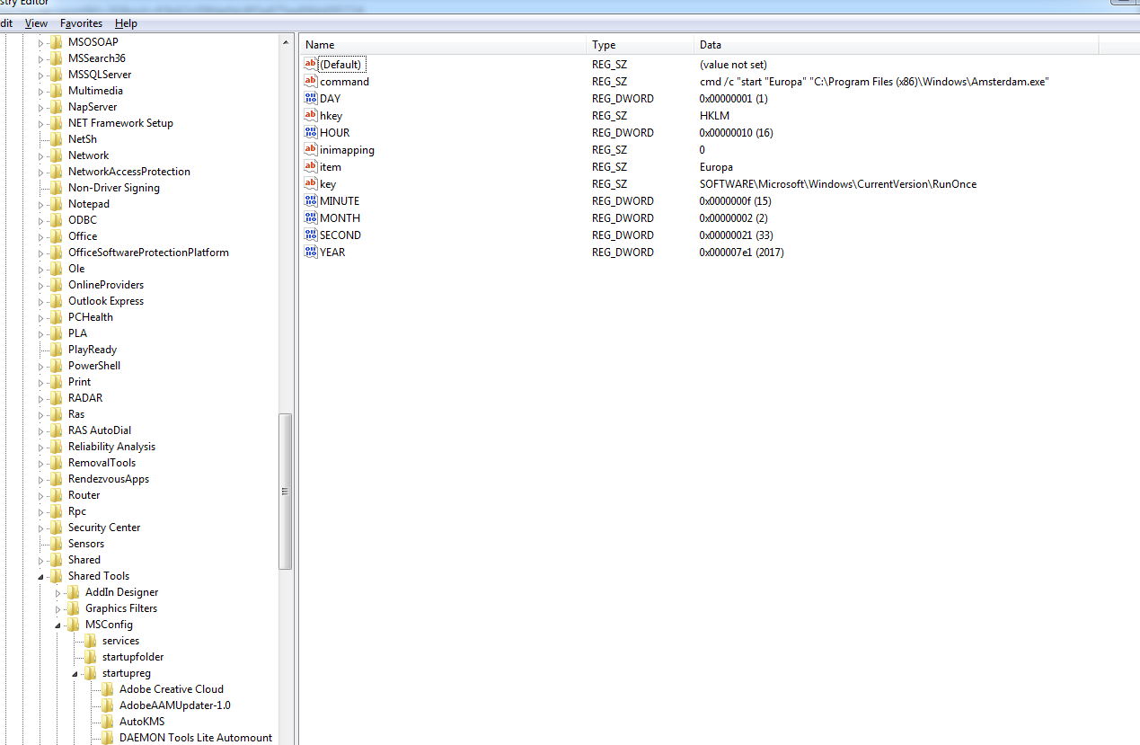 Nějakým nešikovným způsobem jsem do pc stáhnul virus pravděpodobně keylogger. Někdy nejde zapnout mozilla nebo spustit jakákoliv aplikace ale moc jsem to neřešil dokud jsem nezjistil že si někdo z mého paypal učtu poslal peníze. Nikdo na tento paypal učet přístup neměl takže jsem z toho odvodil že budu mít v PC keylogger. Ve Task manageru jsem objevil nějaký program jménem "Amsterdam.exe", program se nacházel na "C:/windows/Amsterdam.exe" a v nouzovém režimu jsem udělal uplný sken v MBAM. bohužel to nepomohlo, při dalším zapnutí se "Amsterdam.exe" znovu objevil. přes Ccleaner jsem našel v registrech takovou "složku" (příloha). Přes Netlimiter sem zjistil že virus stahuje a uploaduje data. pokaždý když se ho snažim odstranit z registru hned se tam znova objeví.