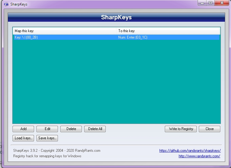 Když jsem hledal způsob jak deaktivovat klávesu nad úzkým enterem abych mohl vyměnit keycaps za dvouřádkový enter a přitom nemusel vyměňovat normální switch za "dummy" switch, narazil jsem na program SharpKey.