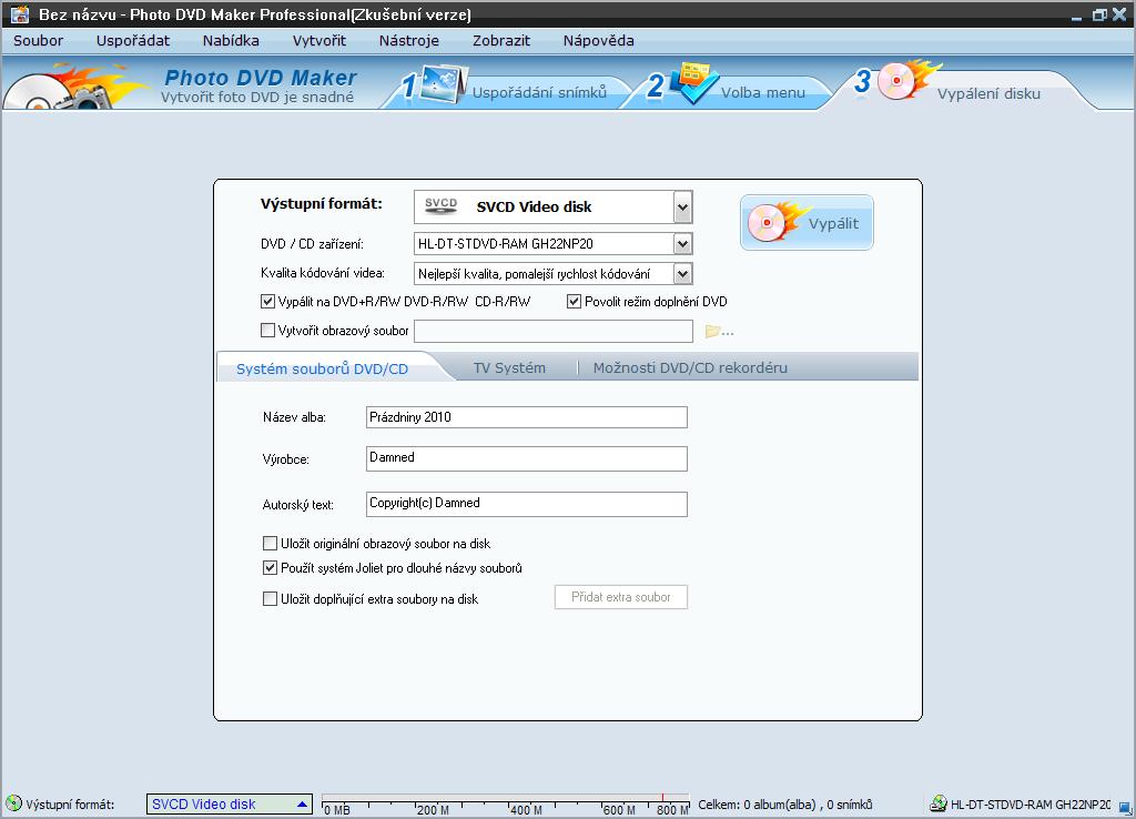 Moc prosím o radu. Já jsem si tento program stáhla včera ale když  chci vypálit na DVD prezentaci z fotek, tak mi to píše, že není vložen žádný disk i když v mechanice je, tak už nevím co s tím... Zkoušela jsem dělat prezentaci v Nero Vision a úplně v pohodě se mi to podařilo vypálit na to samé DVD u kterého mi to v DVD photo maker nejde..