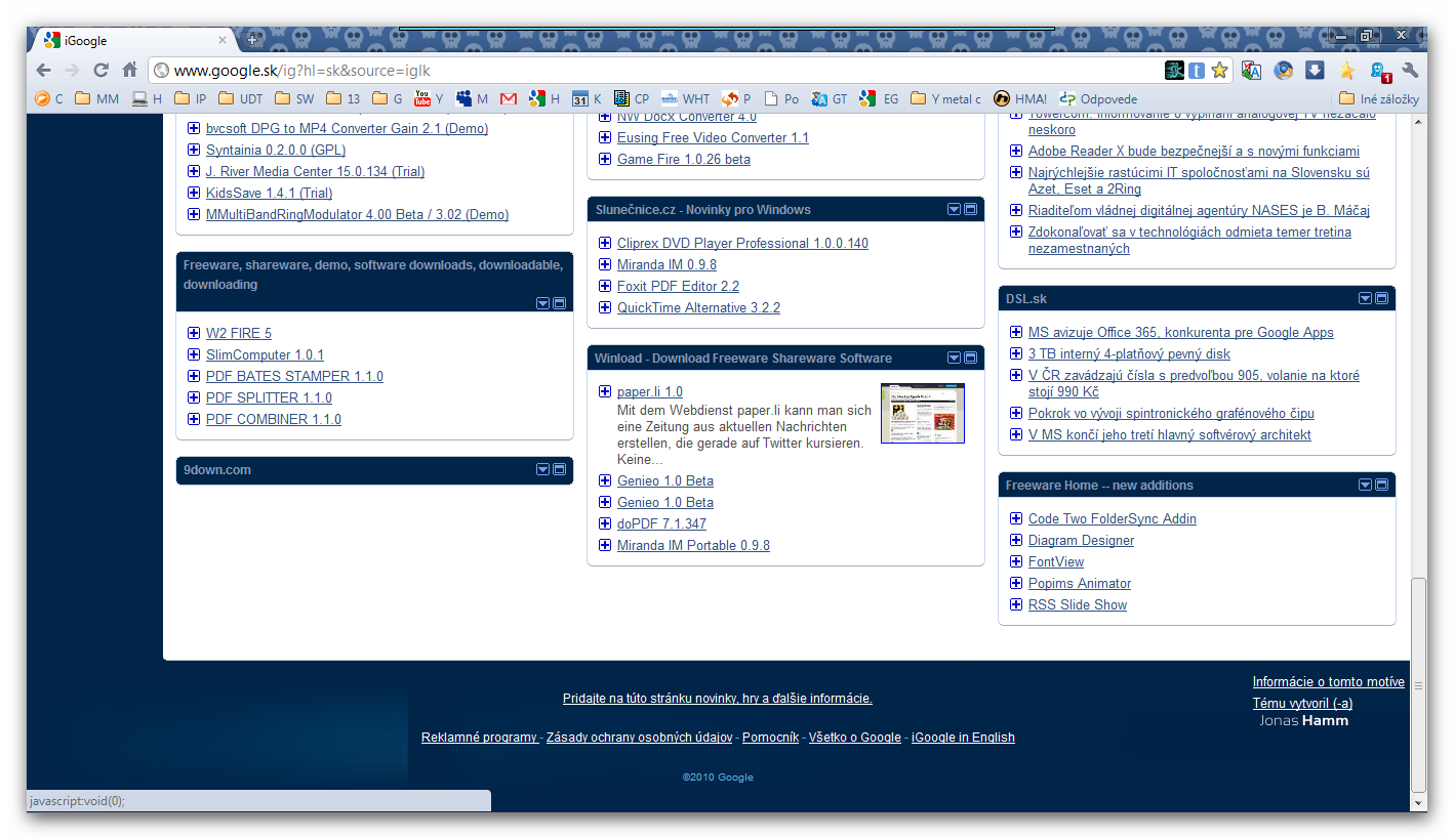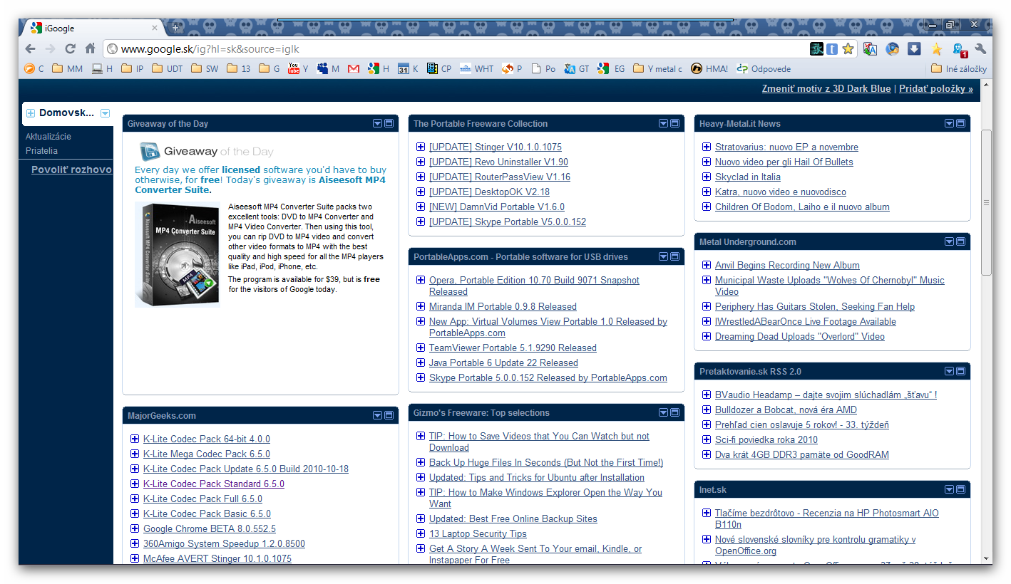 Kto používa iGoogle tak si môže pridať gadget http://www.google.sk/ig/directory?hl=sk ... widget.xml a bude mať prehľad čo každý deň pribudlo. Celkovo je iGoogle dobrý na prehľad o najnovších veciach: