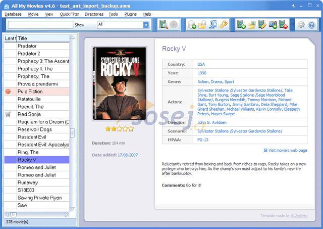 All My Movies je určen pro ty, kteří jsou unaveni ze spravování své domácí filmové kolekce. Je to jednoduše použitelný správce filmové sbírky. Můžete katalogizovat vaše DVD, CD a VHS kazety. Nemusíte psát ke všem filmům detaily, program je stáhne a vyplní za vás! Program je multijazykový a pomáhá přeložit texty do jiného jazyku.