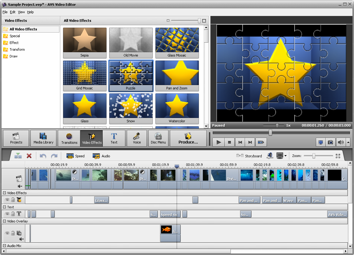 AVS Video Editor is powerful video editing software which can create hollywood-like videos with photos, videos and music. The program has a user-friendly interface and is available in many languages (German, French, Italian, Spanish, Japanese, etc.). It is packed with a lot of useful features and easy tools. AVS Video Editor is designed for both beginners and advanced users.