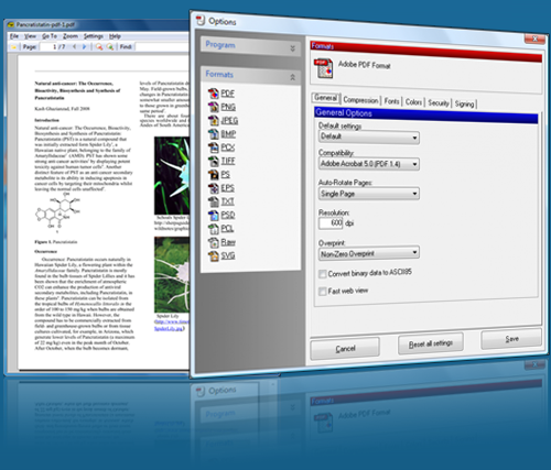 Vytvořit jiné foramts než jen PDF: TIFF, JPG, PNG, BMP, PCX, EPS, PS a další ...
