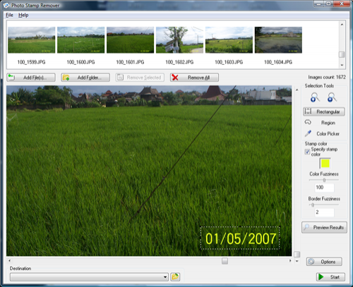 Photo Stamp Remover is a photo correction utility that can remove watermarks, date stamps and other unwanted objects that appear on photographs. Offering a fully automatic process, the program uses an intelligent restoration technology to fill the selected area with the texture generated from the pixels around the selection, so that the defect blends into the rest of the image naturally.