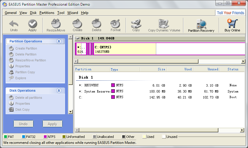 EaseUS Partition Master Processional is an easy-to-use yet excellent disk management tool. With its intuitive interface, users can easily resize, copy, and recover the partitions. It allows us to extend system or non-system partitions, freely drag partitions to move the unallocated spaces and migrate OS to another HDD or SSD.