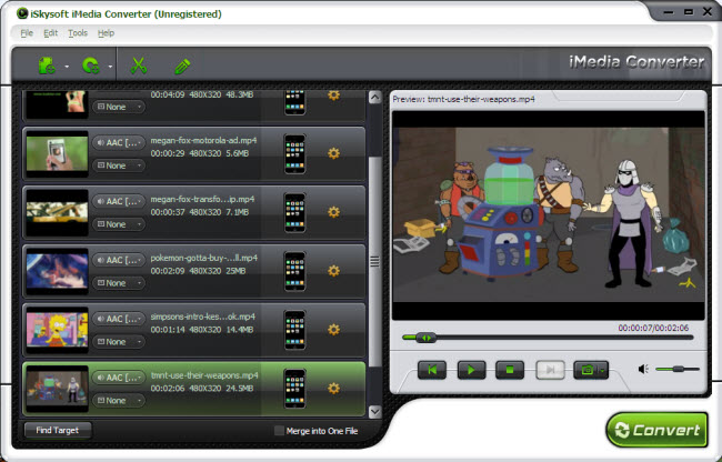 iMedia Converter pre Windows je media konvertor, ktorý spája ripovanie DVD diskov a prevod audio a video súborov pre užívateľov Windows.Rip DVD, konverzia videa (ako je MP4, MOV, AVI, WMV, FLV) a extrahovanie audio z DVD a video pre prehrávanie na mobilných prehrávačoch, ako je iPod Touch 4, iPod Nano, iPhone 4, iPhone 3GS, Apple TV, Zune, PSP, Creative Zen, Archos, HTC a ďalšie prenosné zariadenia. Tiež vám pomôže odstrániť DRM ochranu a obmedzenia využívať video a audio súbory. Dáva plnú podporu Windows 7.