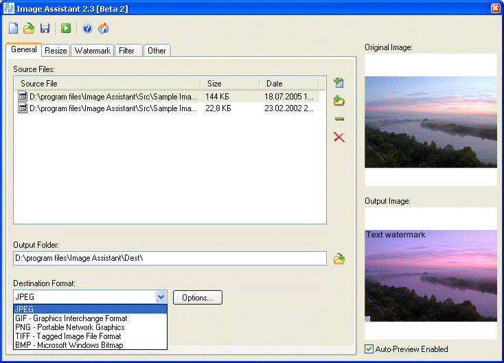 Image Assistant je pokročilý fotografický konvertor, který podporuje více než 90 různých grafických formátů obrázků, a dává vám širokou škálu způsobů, jak zlepšit a změnit obrázky. Změna velikosti, otočení, vodoznak, a dokonce konvertovat vaše snímky s lehkostí. Vlastní obrázky je převést do sépie, nebo přidat okraj.