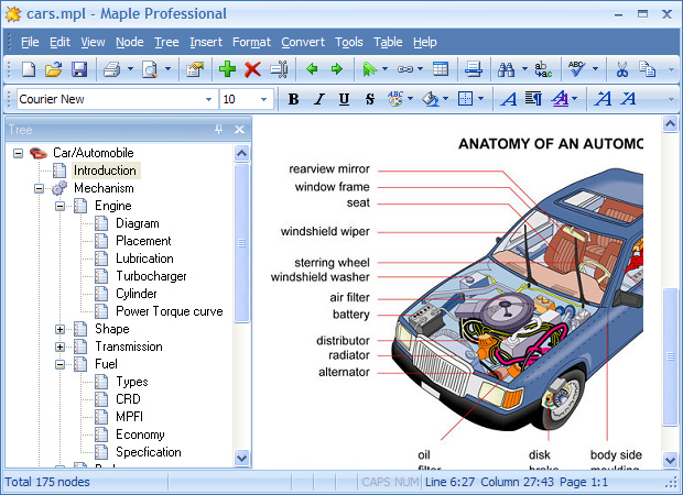 Maple Professional je vlajkovou lodí manažerů stromu osnovy pro pokročilé uživatele. To umožňuje vytvářet hierarchické stromy pro ukládání informací, jako jsou dokumenty, poznámky a obrázky.