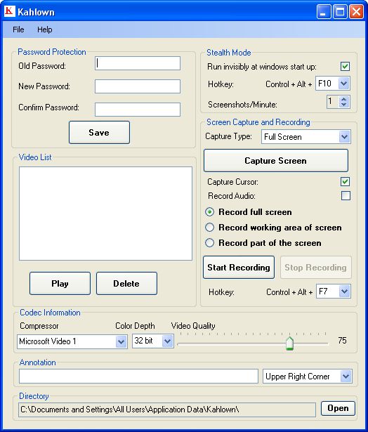 Kahlown je snímání a nahrávání obrazovky . Kahlown poskytuje řadu funkcí snímání obrazovky a funkce nahrávání. Režim Stealth umožní rodičům neviditelný záznam na pozadí a možnost sledovat své děti.