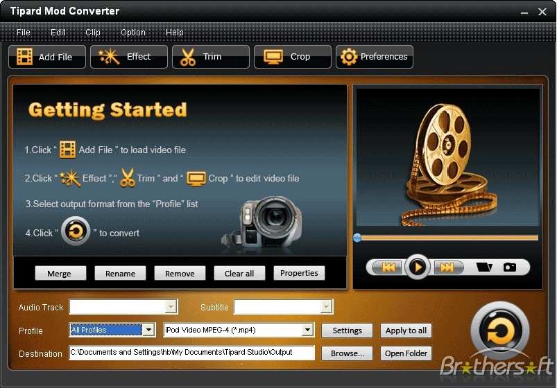 Tipard Mod Converter je navržen pro různé fanoušky videokamery a podporuje Sony, JVC, Panasonic HD videokamery. Tento program vám pomůže převést MOD, TOD, MPEG, MPG, MPV, MP4, VOB soubory na populární video formáty: MP4, MPG, MOV, VOB, AVI, 3GP, FLV, H.264 HD, HD WMV, AVI HD , atd.