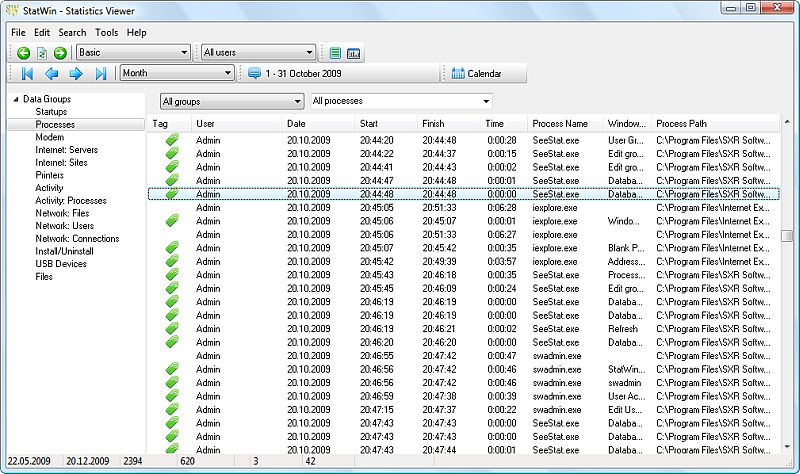 StatWin Professional je nástroj, který sleduje dění na vašem počítači. Monitoruje časy spouštění a používání počítače, čas chodu jednotlivých procesů, navštívené webové stránky, vyťištěné dokumenty, souhrnnou aktivitu myši a klávesnice, připojení USB zařízení, přístupy do sítě a mnoho dalšího.