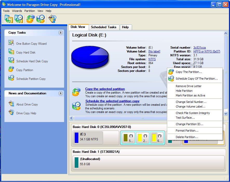 Kompletní záloha systému a všeho potřebného na jiný disk, případně záloha celého HDD. Při přesunu můžete na PC pracovat. Vyžaduje restart.