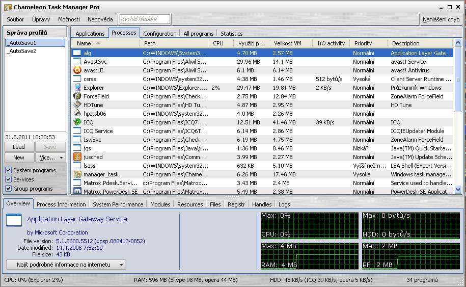 Program nahrazuje standardního Správce úloh systému Windows. Umožňuje kompletní správu běžících procesů a automatickou optimalizaci výkonu, poskytuje podrobné informace o programech včetně monitorování nově spouštěných programů a modifikovaných souborů.
