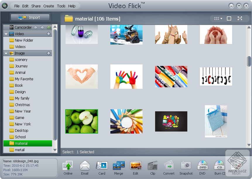 Produkt VideoFlick představuje jednoduchý způsob jak upravit a sdílet videa a digitální fotografie nahrané DV, fotoaparátem nebo mobilním telefonem. Obsahuje mnoho užitečných funkcí: