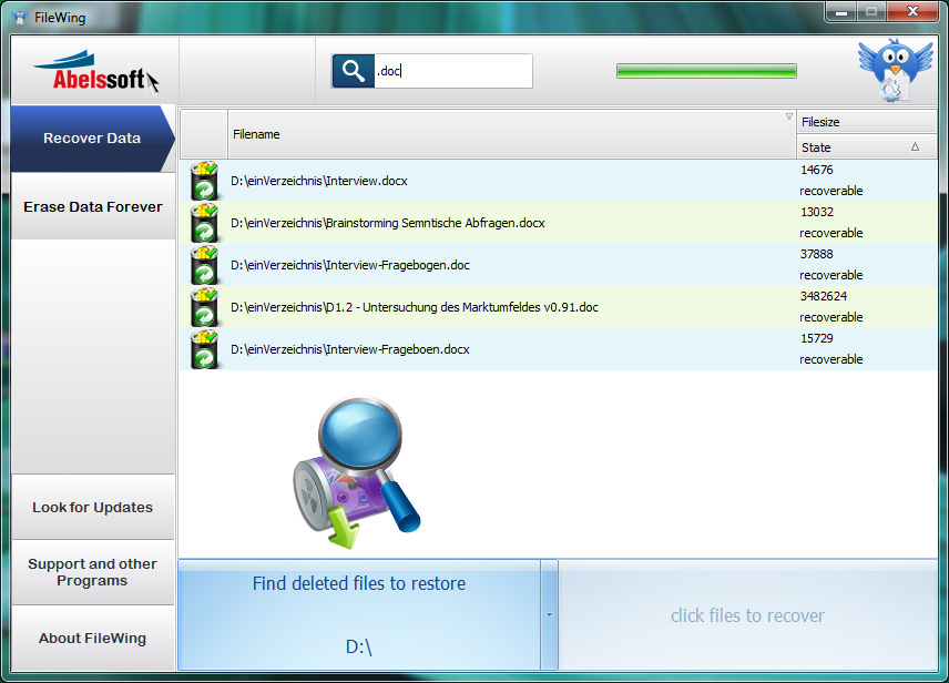 Abelssoft FileWing vám může pomoci obnovit nechtěně smazané soubory a také umí nechtěné soubory několikrát přepsat aby je již nebylo možné znova obnovit.