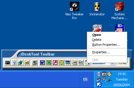 DeskTool je stolní panel navržen tak, aby byl snadný přístup k často používaným aplikacím zobrazením organizované řady tlačítek. Tlačítka můžete připnout na všechny strany, tedy vodorovně i svisle.