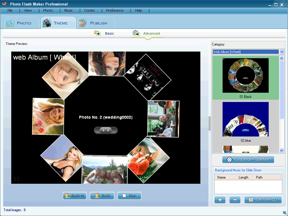 S Photo Maker Flash, můžete vytvořit úžasné prezentace fotografií ve formátu Flash SWF pro sledování na počítači, vypálit auto-run flash fotoalbum na dárek CD / DVD, vytvářet webové galerie se skvělými flash prezentací s dynamickými SWF + HTML + soubory XML , nebo nahrát prezentace na naší bezplatné webové album Go2Album, a pak vložit slideshow na Facebook, MySpace, Blogger, Friendster a mnoho dalších společenských webových stránek.