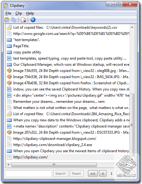 ClipDiary plní funkcí správce vaši schránky ve Windows (clipboard). Zaznamená všechny informace, které byly kdy vloženy do schránky, a díky tomu je můžete mít znovu k dispozici. Umožňuje tak rychle získat text ze své databáze, který můžete umístit do schránky nebo do jakékoliv aplikace. Ušetříte tak mnoho času.