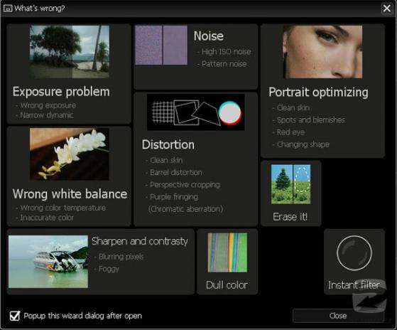 Při otevření obrázku v programu je k dispozici přehledný průvodce, ve kterém si vyberete, co je s obrázkem špatně případně co s ním chcete dělat.