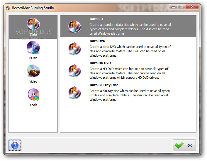 Nový RecordMax Burning Studio zachovává všechny výhody svého předchůdce a přidává multi-disk zálohování souborů, integrovaný audio CD ripper a další vylepšenou podporu pro nový vzrušující Blu-ray formát s kapacitou až 25 GB na vrstvu.