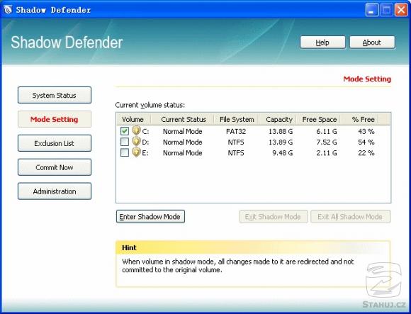 Shadow Defender je lehce použitelné bezpečnostní řešení pro operační systémy Windows. Jeho úkolem je ochránit váš počítač před škodlivou činností a nežádoucími změnami, které má na svědomí malware. Součástí programu Shadow Defender je virtuální prostředí, tzv. stínový režim, ve kterém můžete provádět změny bez vlivu na reálný režim. Pokud dojde ke škodlivé činnosti, nebo nežádoucím změnám zapříčiněným přítomností malwaru, stačí počítač restartovat a systém se obnoví zpět v původním stavu.