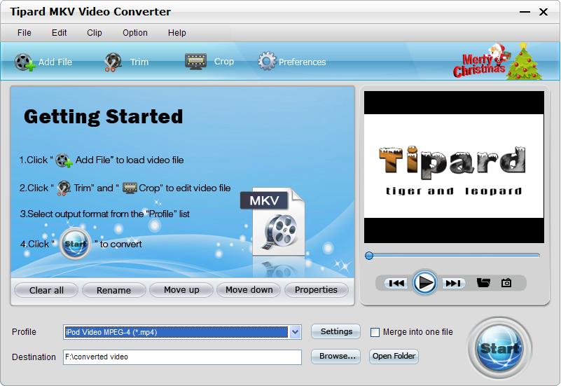 Tipard MKV Video Converter převádí videa pro přehrávání na přenosných zařízeních, Tipard MKV Video Converter představil upgrade verzi obohatil vstupní a výstupní formáty a zvýšil výstupní profil pro podporu nejen zařízení, ale i editační software. To vám umožní převést více video formátů, jako je TS, MTS, M2TS, MXF, TRP, TP, MP4, M4V, MOV, QT, MPEG4, AVI, FLV, MOD, TOD, RMVB, WMV, ASF, MKV, VOB, WTV, atd.