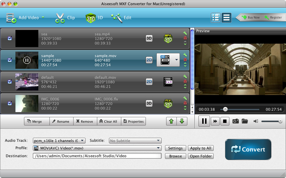 Převod MXF Converter (Win / Mac) je plně vybavený software určený pro soubor MXF hlavně zaznamenané Panasonic DVCPRO P2, Sony XDCAM a Canon XF videokamery. Výkonný software je možné převést MXF soubor do různých video formátů, jako MOV, AVI, WMV, MP4 atd. podporované editorem Sony Vegas, Adobe Premiere, Avid Media Composer, Apple ProRes, iMovie, DVCPRO, HDV, Avid DNxHD, XDCAM a Apple Intermediate Codec. Plus software je možné převést 2D video do 3D MXF video.