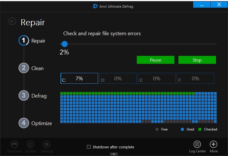 Anvi Ultimate Defrag is featured with disk errors repairing, junk files cleaning up, defragging and hard disks optimization tools to improve computer performance and